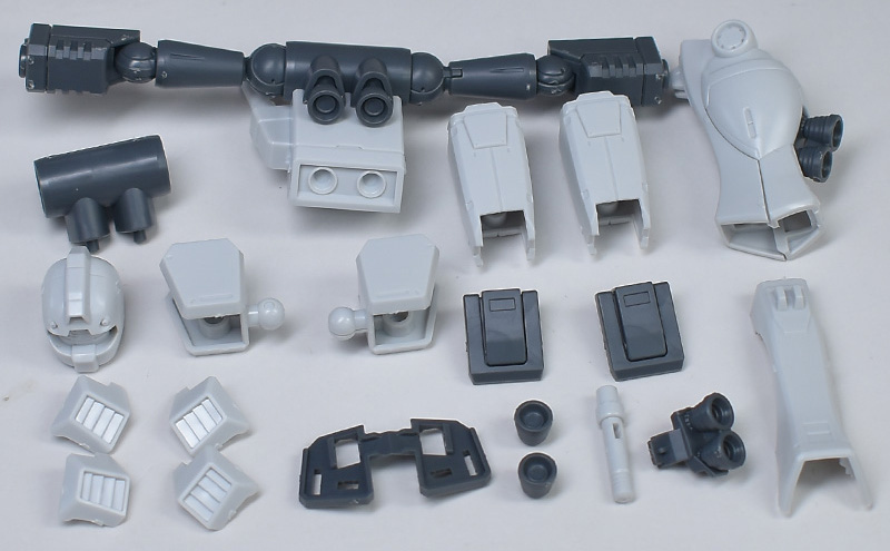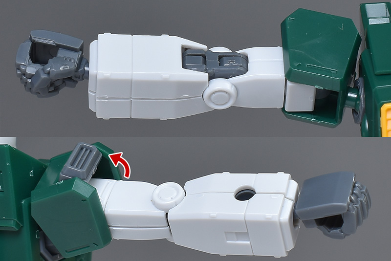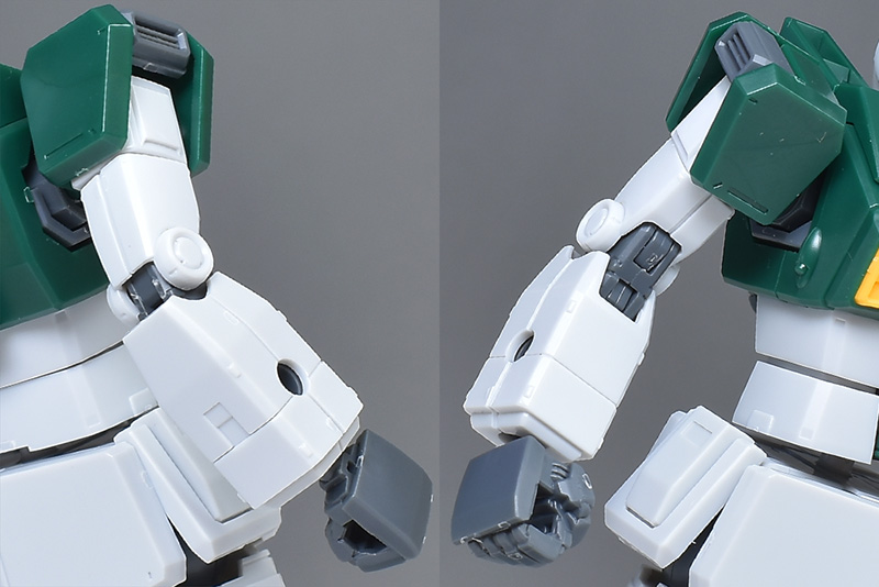 内部フレームを基礎として、上腕は外装を左右、前腕は前後から被せる仕様ですが、合わせ目は各部とも段落ちモールド化されています。