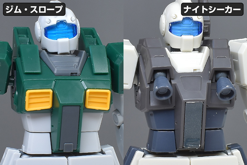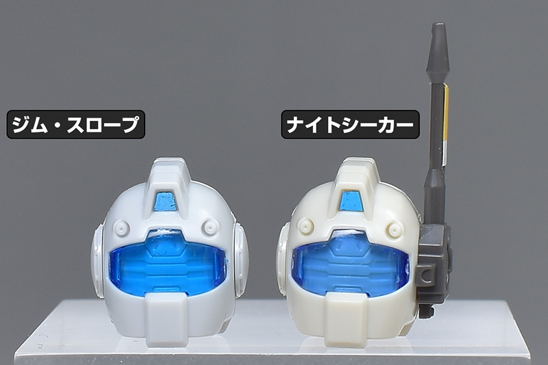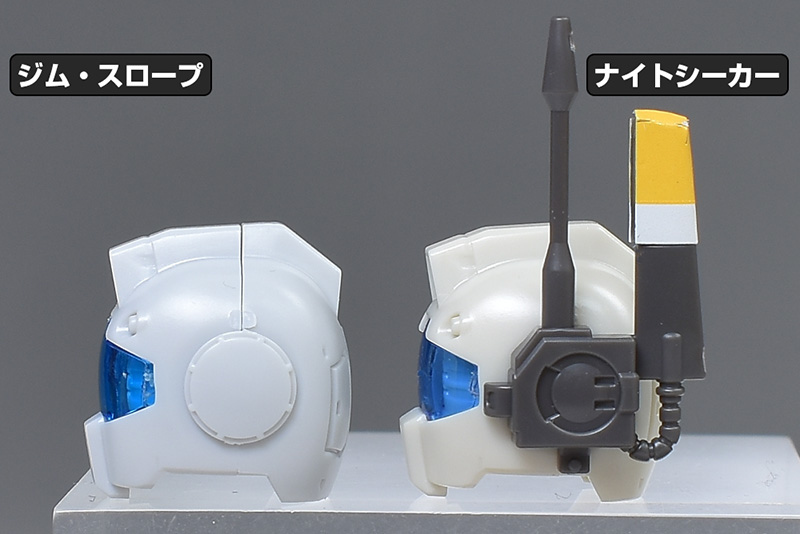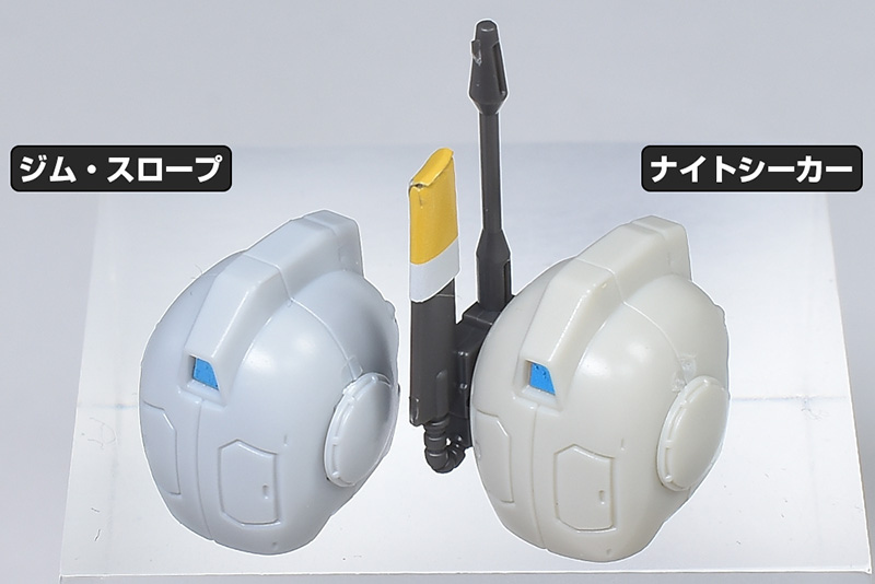 形状の異なる部分のみ、HGジム・ナイトシーカー(マーカー・ポッド仕様の頭部)と比較しながら各部を見ていきます。