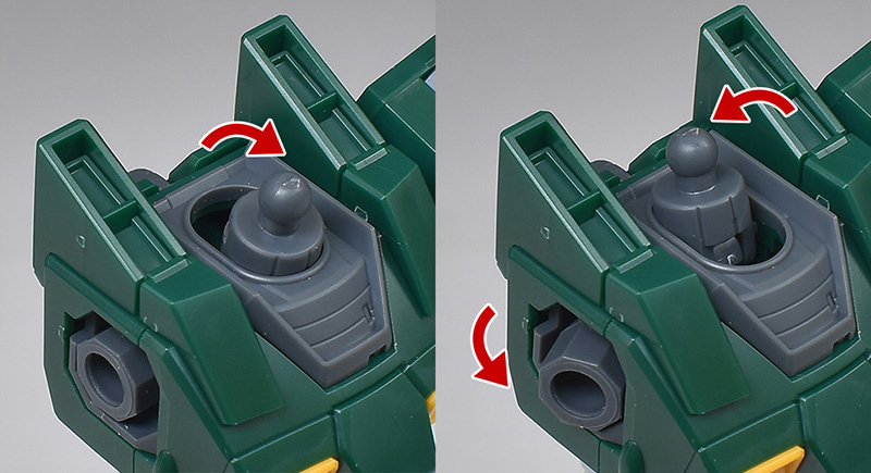 背面のホバーユニット接続部はジム本体部と2ダボ接続ですが、外装を兼ねているため、取り外しはしない造りになっています。