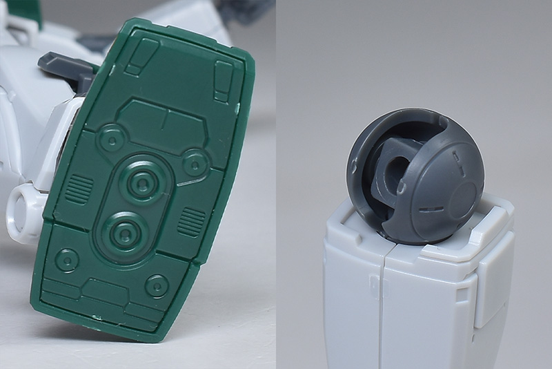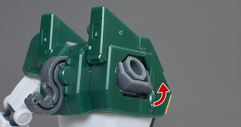ショルダーアーマーも前後の組み合わせですが、合わせ目は端でモールド化。側面のグレーダクトは上下にスイングが可能です。各部とも合わせ目はできず、全体的に出来は良いですね。