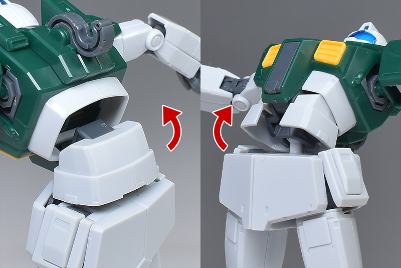 胸部・腹部。関節や外装の一部をナイトシーカーから流用しつつ、各部がジム・スループ用に新造。素ジムの両肩にダクトアーマーが追加されたようなデザインになっています。