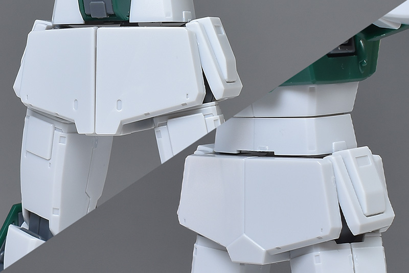 腰部。形状自体はナイトシーカーと同じ。フロント、リアアーマーともにジム系らしいフラットな装甲が造形されています。。フロントアーマーはふんどし部分がないタイプで、左右2枚装甲のみで構成されています。