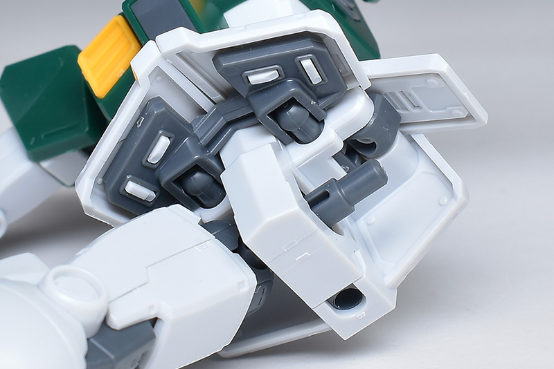 腕部。こちらも形状はナイトシーカーと同じ。特に派手な装備はなく、フラットな装甲のみで構成されています。ジムの系譜を継ぐシンプルなデザイン。