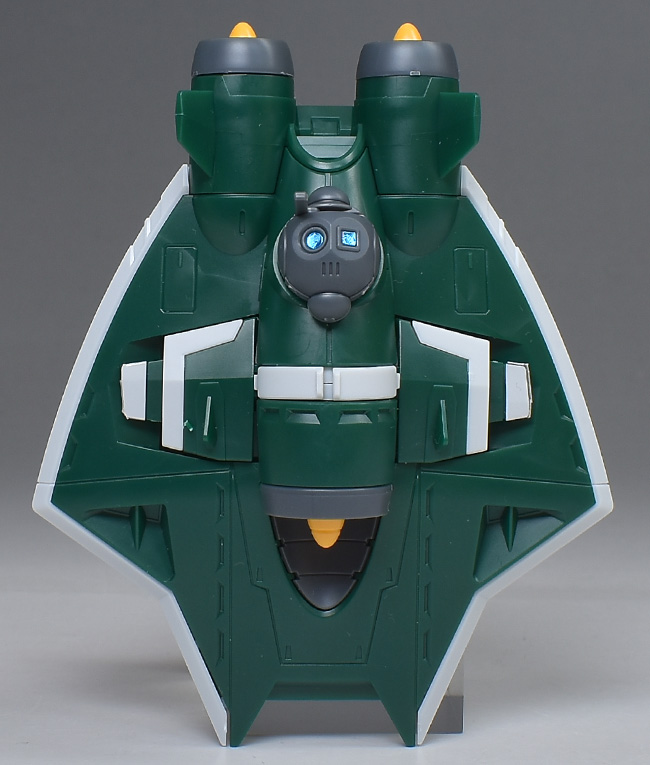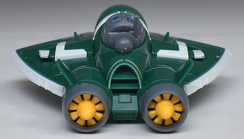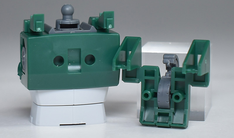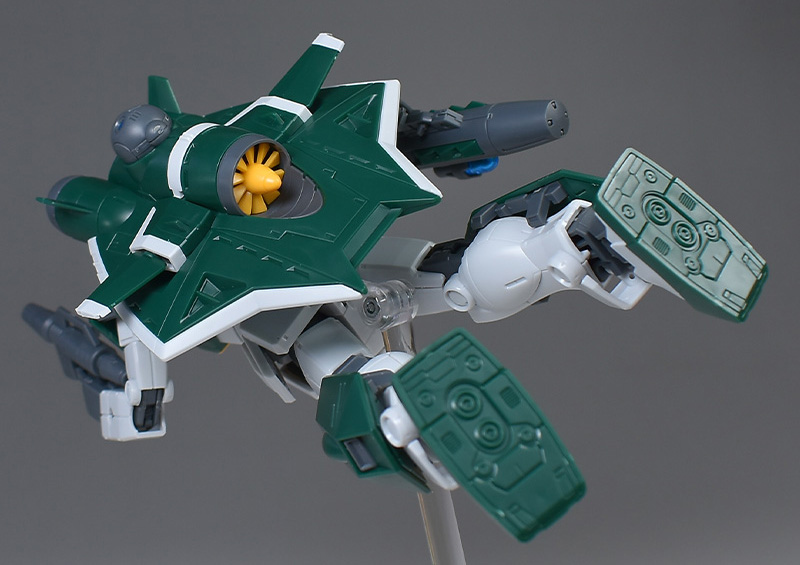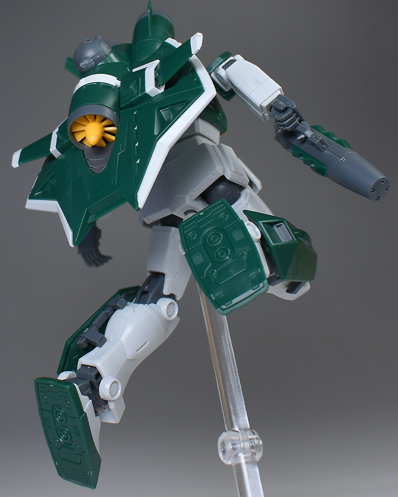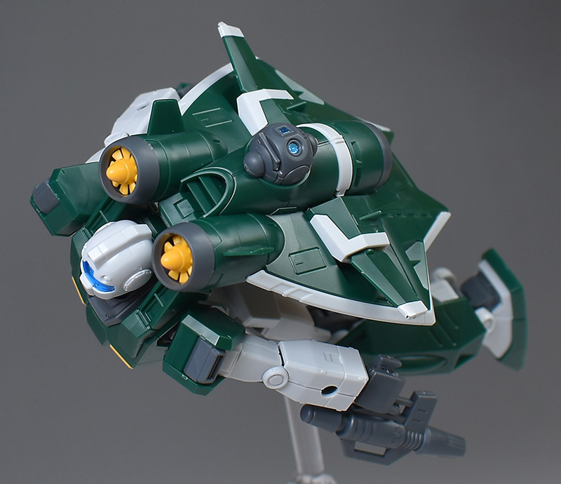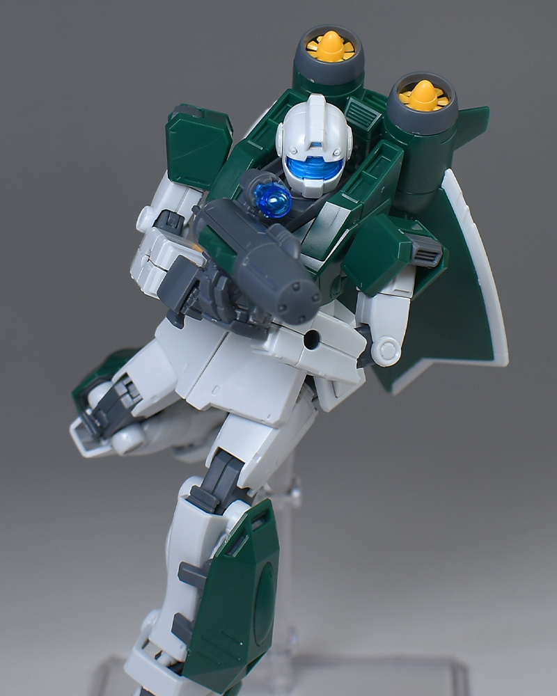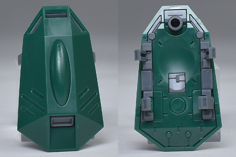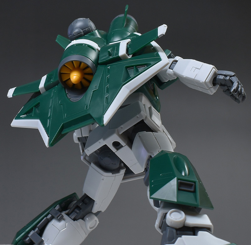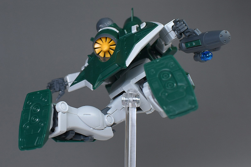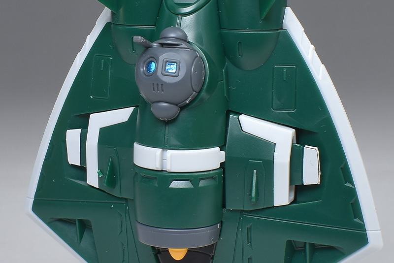 成形色は若干くすみのあるホワイトと深みのあるグリーンを基調に、頭部バイザーやソナーガンセンサーにクリアブルー、胸部エアインテークや背部アクア・パックなどにイエローを配色。その他、部分的な装甲や内部・関節、武装類などはグレー成型色での再現となっています。