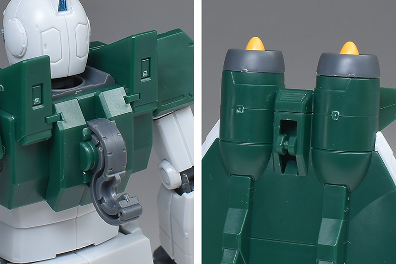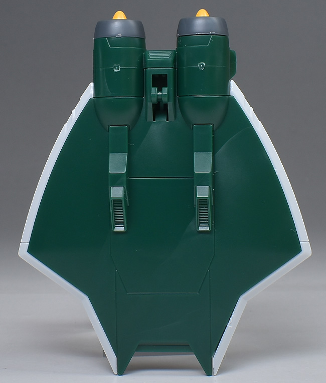 アクア・パックを前後から。ウォータージェットや水中スクーターをイメージしたような、水中専用ユニットらしいデザイン。左右の白いラインはパーツできっちりと色分けされています。
