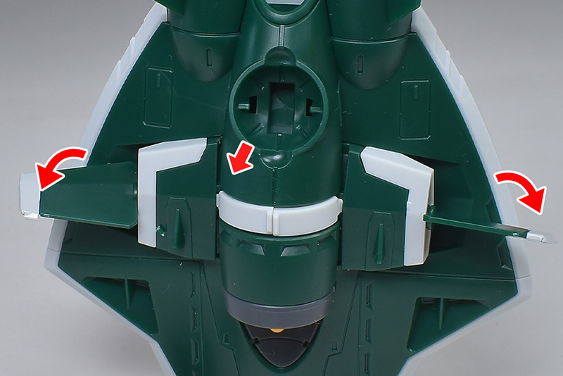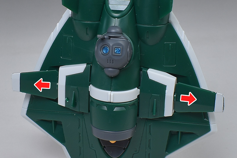 中央の白いパーツを内側にスライドさせることで、左右の水中翼が少し展開。
