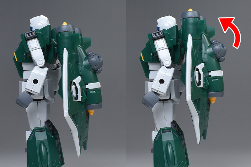 後方にも展開することができます。アクア・パックを本体から外したい場合、S字パーツのヒンジ部分が割とバラしにくいので、一旦背部外装パーツごと外してから分解したほうが良さそうです。