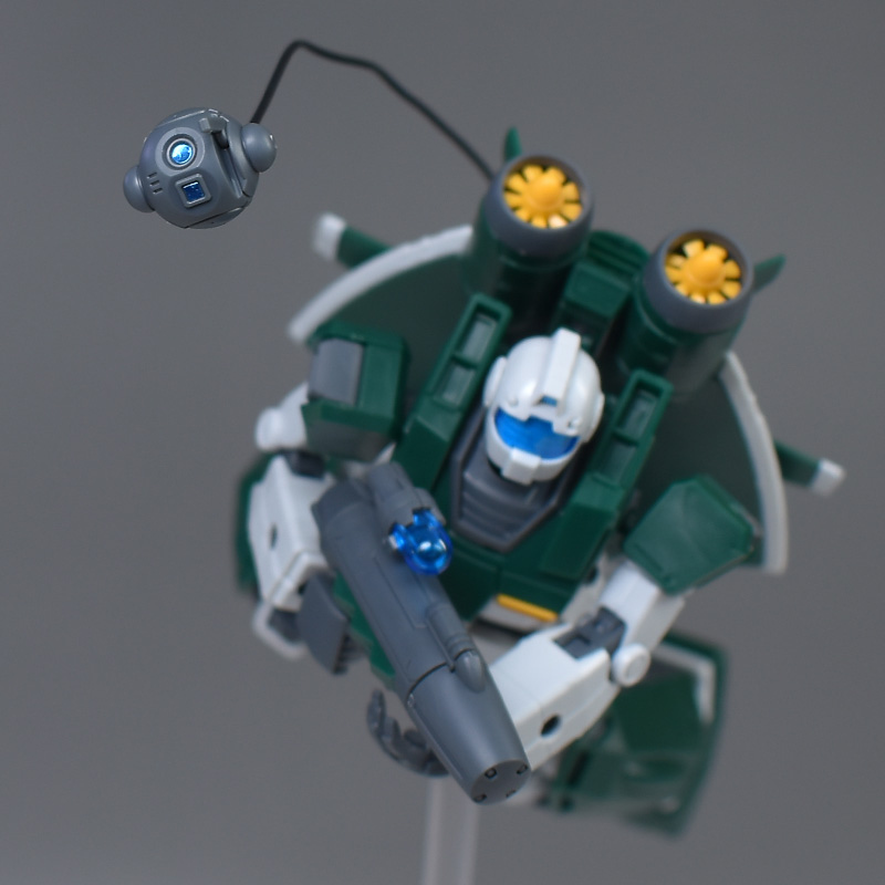 ジム本体からアクア・パックを外してセンサーを展開すると、前後の向きは違いますがアンコウっぽく見えなくはないですね・・・・;ただ、アクア・パックに3.0mm穴はないので単体でディスプレイさせる場合はコの字パーツなどで挟む必要があります。