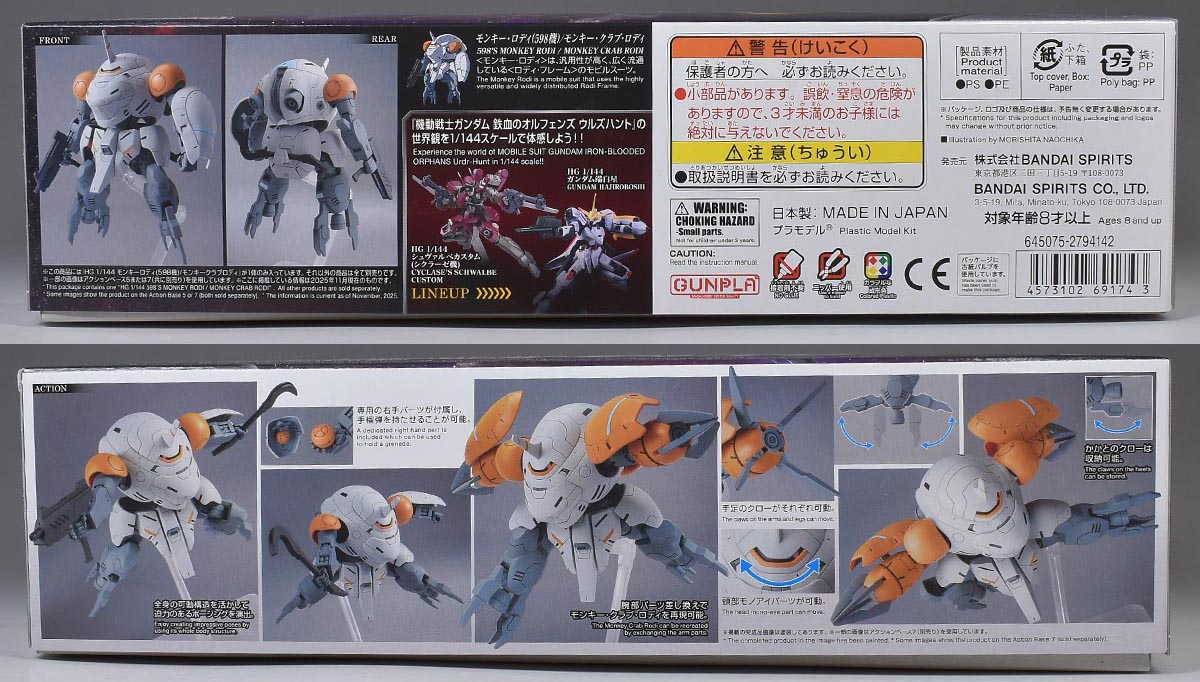 今回は、HG 1/144 モンキーロディ(598機)/モンキークラブロディのパッケージ、説明書、ランナーのレビューをご紹介します!その他、カラーガイド等のレビューも合わせてご紹介していきます。では箱絵からどうぞ。