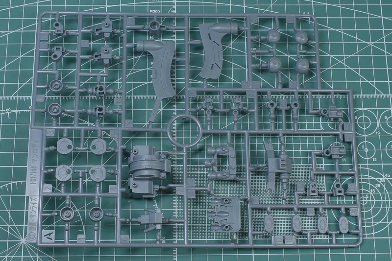 ↑Aランナー。グレー成形色で、胴体部や腕部、脚部の内部・関節パーツ。KPS素材です。HGマンロディからの流用ランナー。