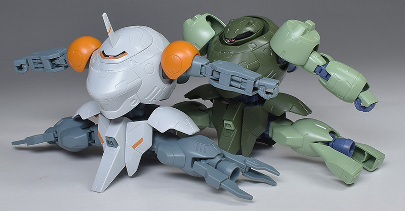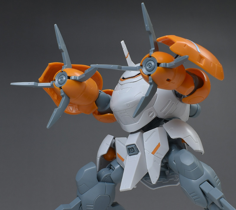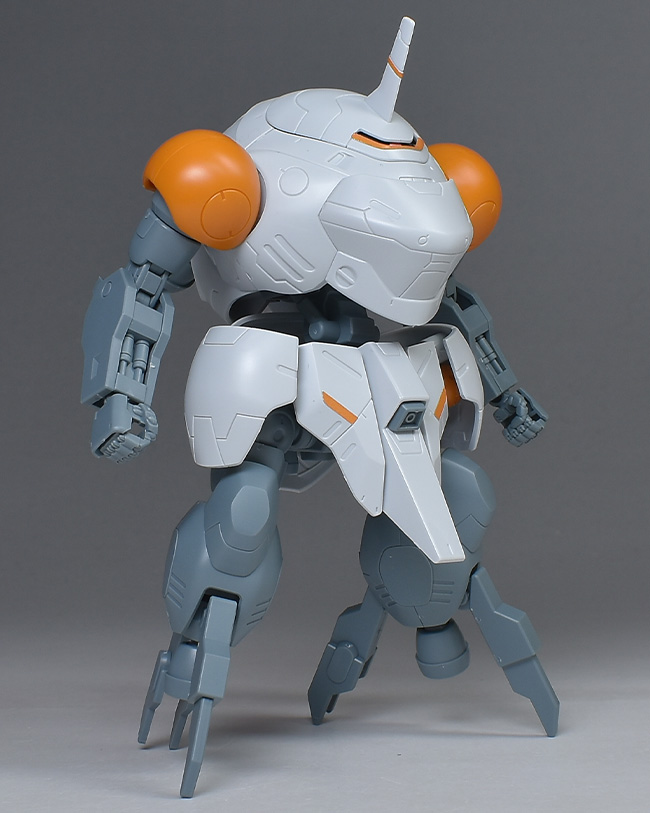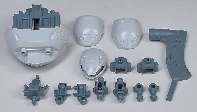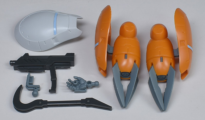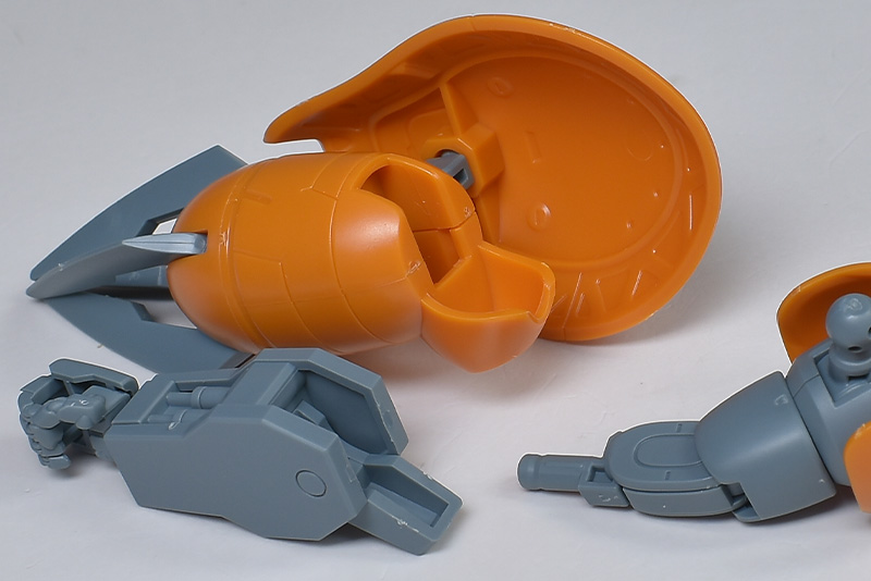 成形色はややくすみのあるホワイトとグレーを基調に、肩部やモンキークラブロディ用の腕部、手榴弾にオレンジを配色。その他、武装類がダークグレー成形色での再現となっています。