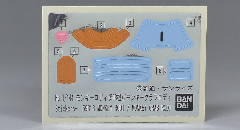胴体部は一部にマンロティのパーツを流用しつつ、モンキーロディ用に各部が新造。重装甲仕様の丸みと厚みのある機体形状が再現されています。フロントアーマーの一部モールドはオレンジのシールでの色分けで、各部モールドはダークグレーに塗り分けが必要。特にコックピットハッチの開閉ギミックなどはありません。