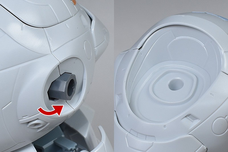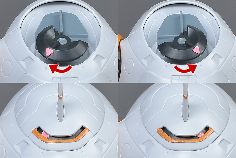頭部パーツがサクッと取り外せるので、モノアイを動かすのがラク。簡単に表情を変化させることができます。