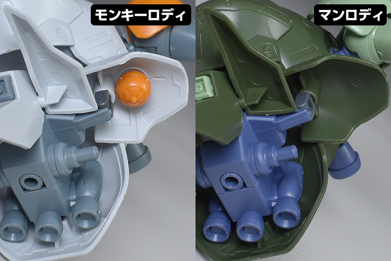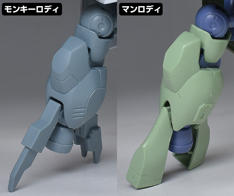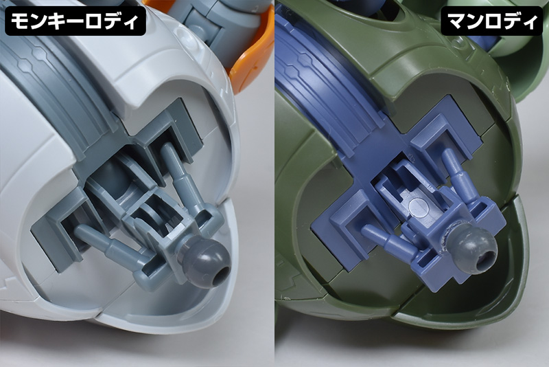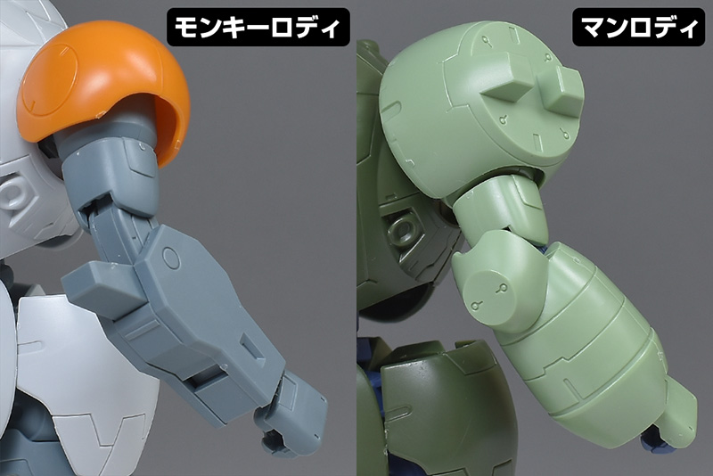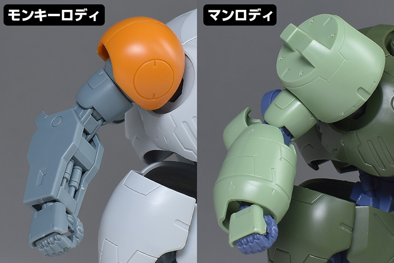 形状の異なる部分のみ、HGマンロディと比較しながら各部を見ていきます。腕部はモンキークラブロディも含めて比較していきます。
