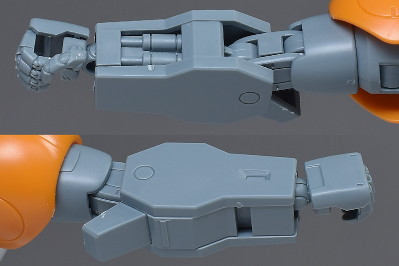 前腕は前後の組み合わせですが、側面の合わせ目はモールドっぽく造形。一部モールドはダークグレーに塗り分けが必要です。