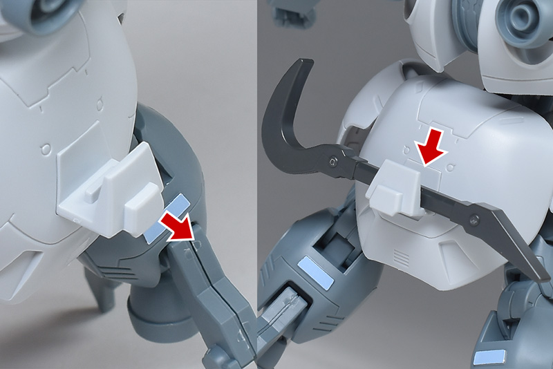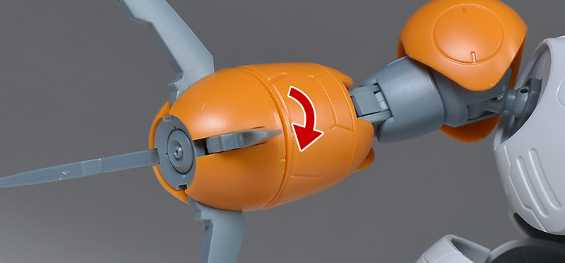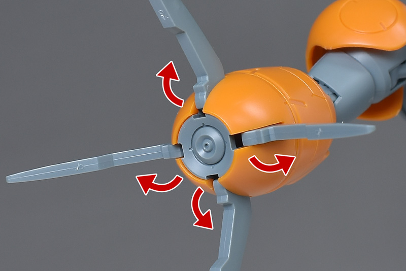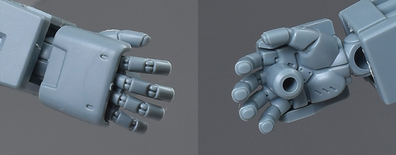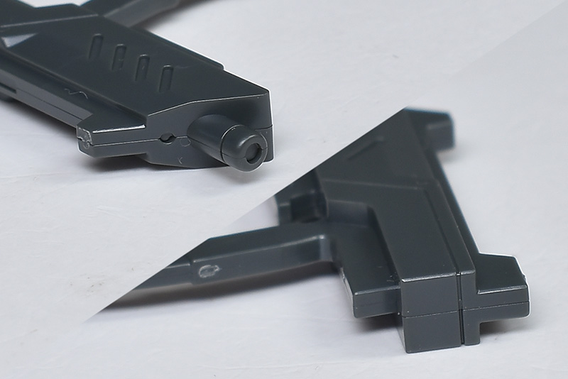 4股のクローはヒンジ接続で展開可能。中央にはマシンガンの砲口が別パーツで色分け、造形されています。クロー各種は1個パーツ構成でシャープ。内側に肉抜き穴などはありません。
