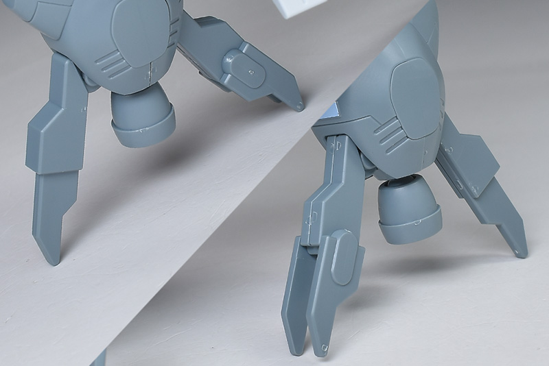 ソール部はシャープなクロー状の装甲が造形。中央にはバーニアも別パーツで造形されています。