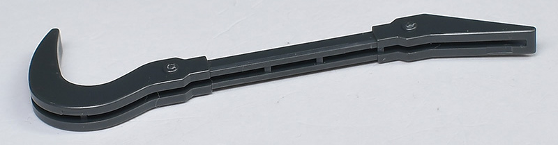 バールも手甲パーツをバラし、グリップを握らせて保持します。ダボ固定ではないですが、隙間なく握らせられるので特に保持がズレたりすることはないようでした。