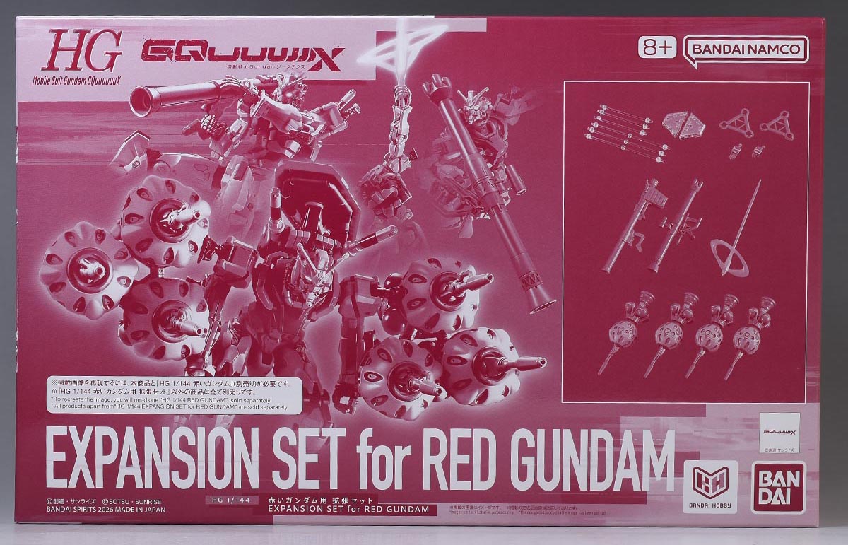 パッケージサイズは一般的なHGよりも高さが1cm程度大きめ。通常のHG赤いガンダムが一般HGと同サイズなので、この拡張パーツセットは赤いガンダム本体よりもパッケージが大きいことになります。