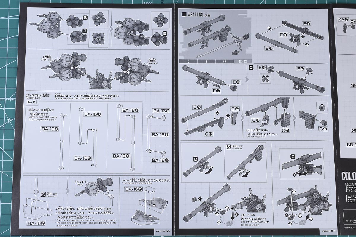 その他、バズーカやザク・バズーカ、余剰のビーム・ライフルやザク・マシンガンを組む場合はそれなりの組み立て時間が必要です。ですがいずれにせよ、拡張パーツなので通常のキットに比べると組み立ては短時間で済みます。