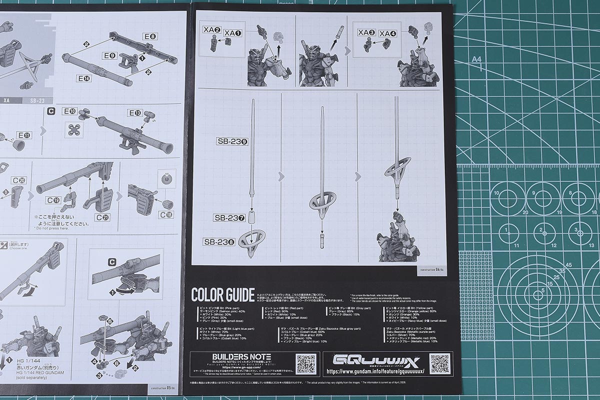 説明書は小判A5サイズ。表紙にイラストはなく、パーツリストと注意書きが記載されたプレバン仕様になります。HG水星の魔女シリーズはプレバンでも一般商品と変わらない仕様だったと記憶していますが、HGジークアクスシリーズはこの仕様で統一されそうです。ちょっと残念かも。