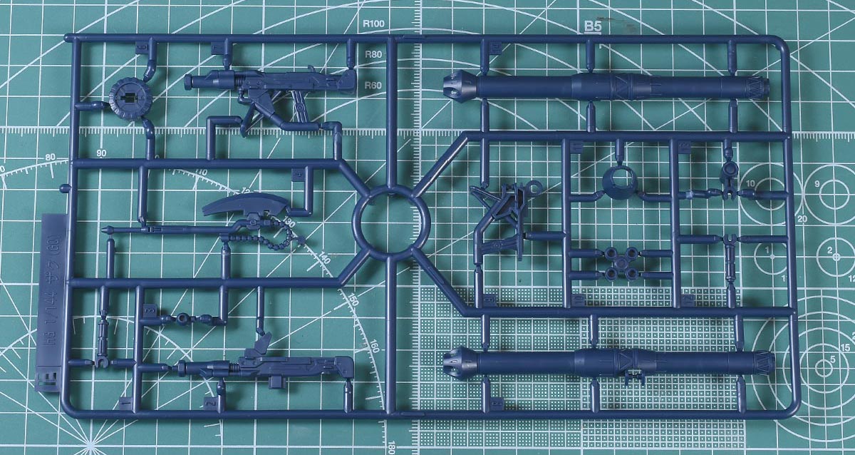 ↑Eランナー。ダークブルー成形色で、ザク・バズーカパーツ。HG ザク(GQ)からの流用ランナーです。KPS素材。