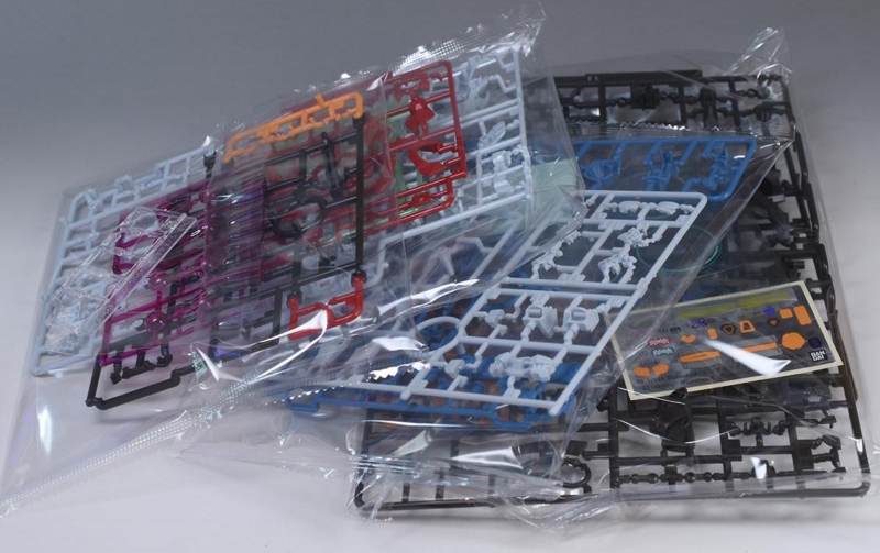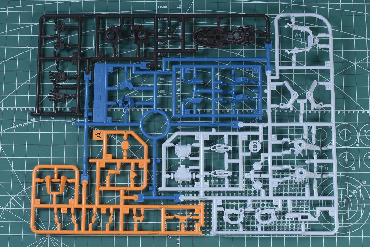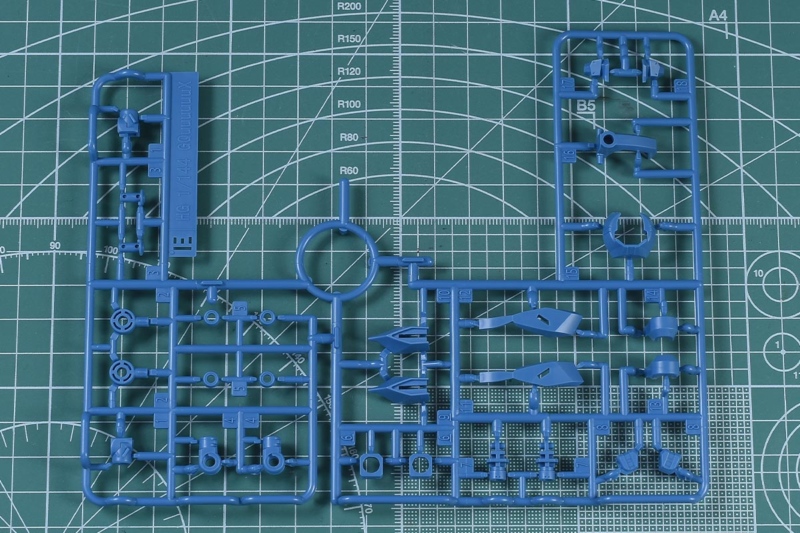 ↑Eランナー。くすみのあるブルー成形色で、胴体部や腕部、脚部外装パーツ、背部スラスターパーツなど。KPS素材です。