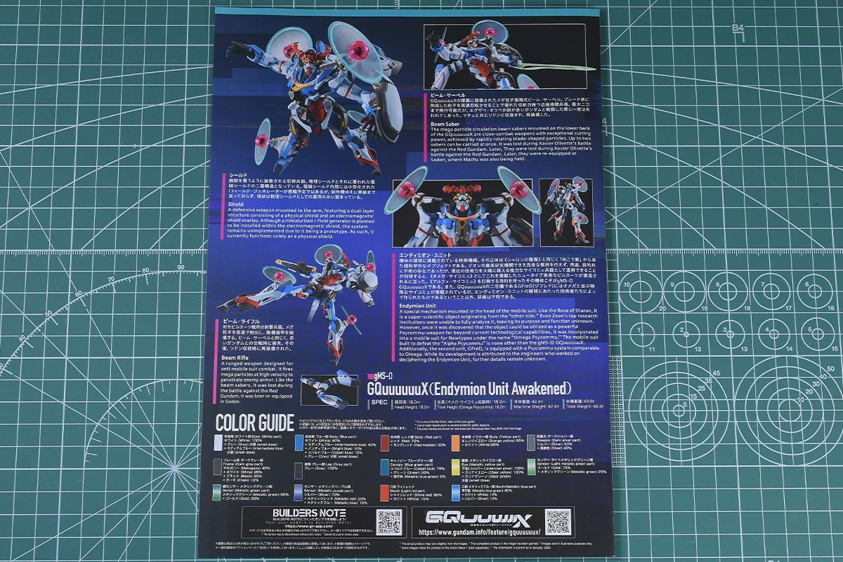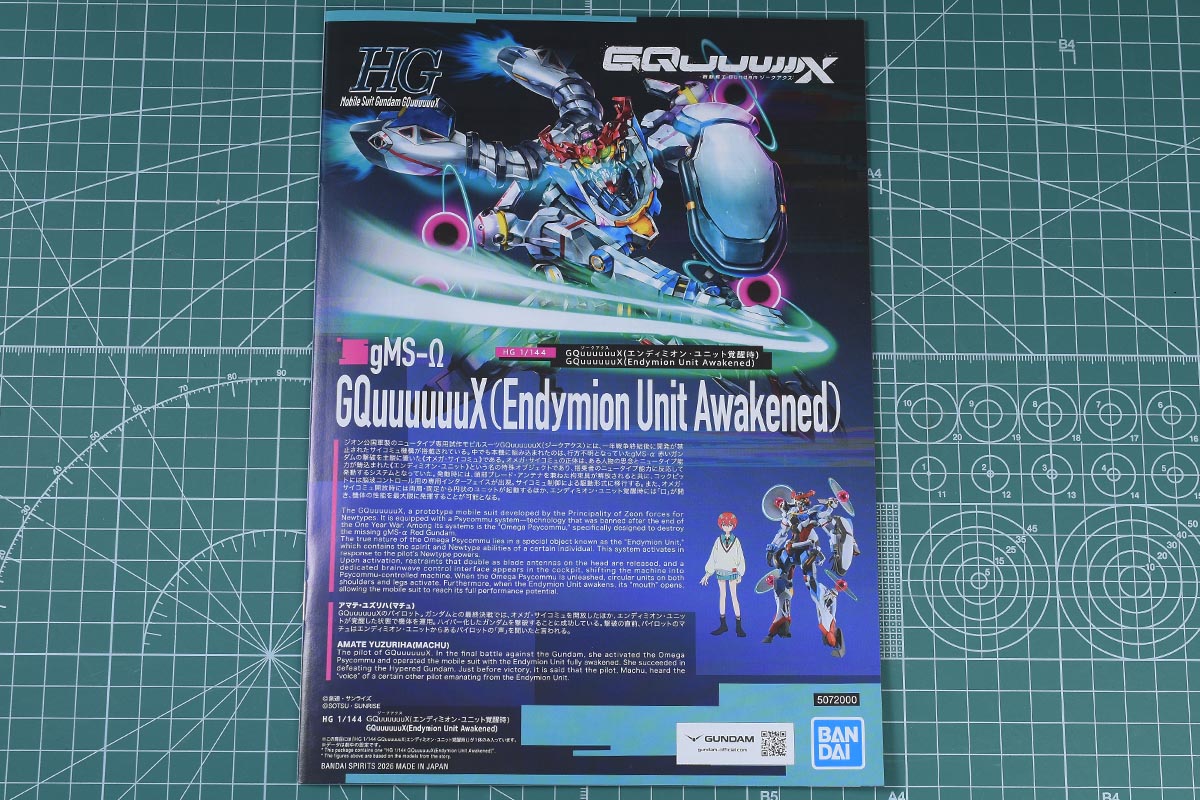 今回は、HG 1/144 gMS-Ω GQuuuuuuX(エンディミオン・ユニット覚醒時)のパッケージ、ランナーをご紹介します!箱絵や説明書、カラーガイド等も合わせてご紹介していきます。では箱絵からどうぞ。
