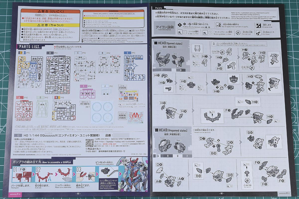 以上、説明書でした。頭部はとにかくパーツが小さく、組み立てには手先の器用さが必要です。小さいパーツの紛失にも、シールの貼り付けにも注意が必要。なのでそういった意味では割と玄人向けのキットと言えそうですね。