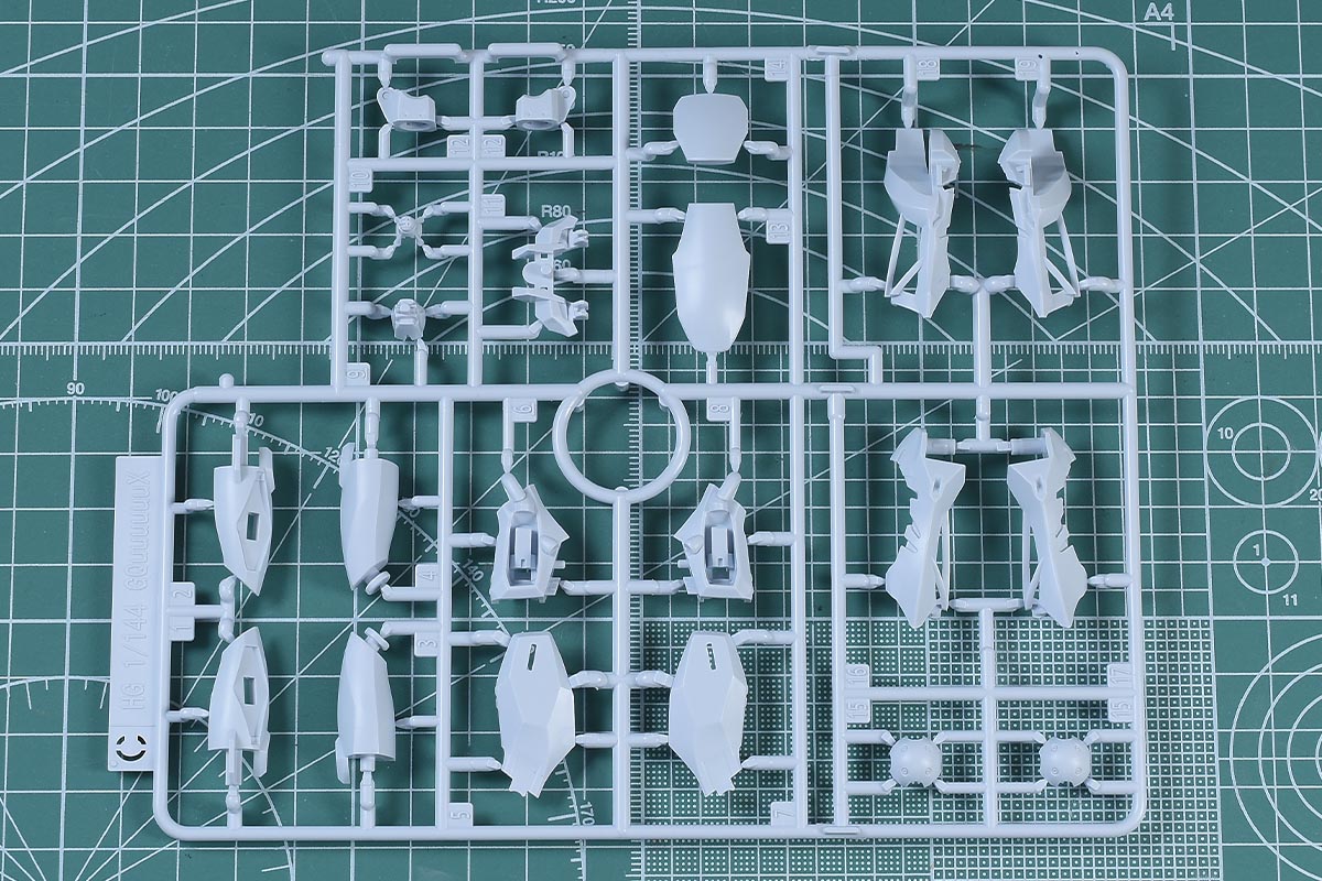 ↑Cランナー。くすみのあるホワイト成型色で、胴体部や腕部、脚部外装パーツ、シールドパーツなど。KPS素材です。