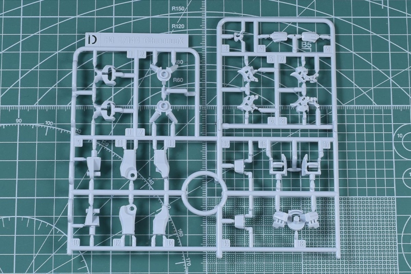 ↑Dランナー。ホワイト成型色で、頭部や胴体部、腕部外装パーツなど。KPS素材です。