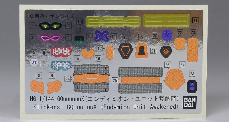 2025年1月に発売されたHG GQuuuuuuXをベースに、エンディミオン・ユニット覚醒時の特徴的な頭部、円形エフェクト展開時の肩部や脚部、ビーム・ライフル懸架用のジョイントが新規パーツを用いて再現されています。