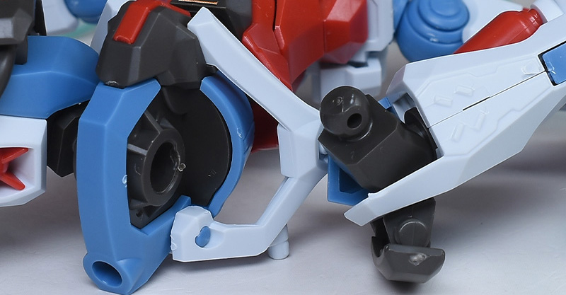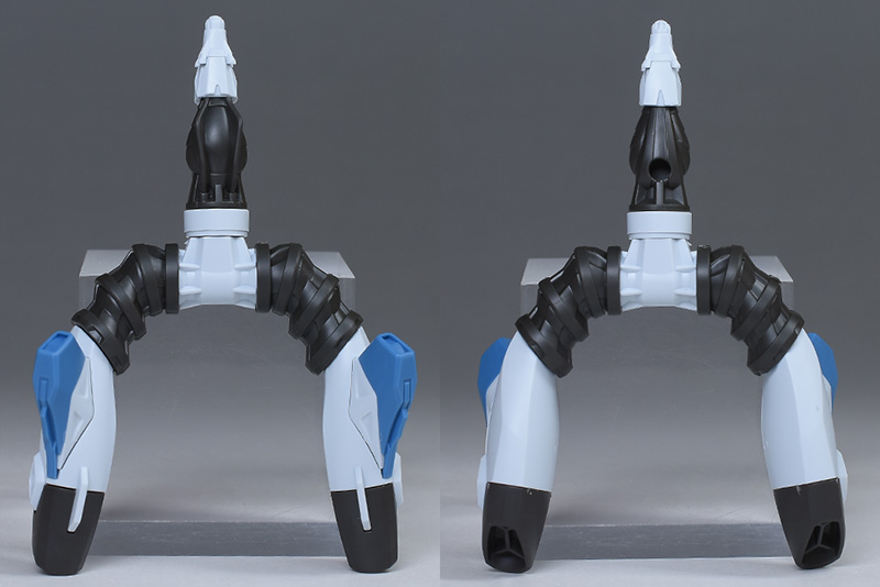 スラスターは蛇腹部、白いスラスター部分共に2枚パーツの組み合わせで合わせ目ができます。合わせ目を消す場合は後ハメなどの加工が必要。青い装甲部分は一部をグレーやオレンジに塗り分けが必要。通常版に比べて少しポロリしやすいようでした。