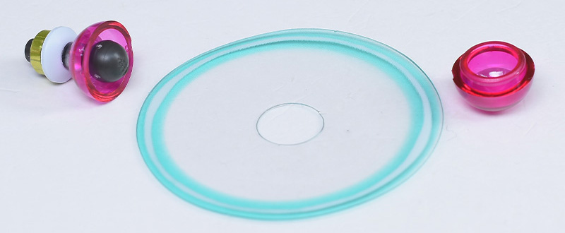円形エフェクトパーツはPET素材での再現。円形のプレートはふちに特徴的なグリーンラインがプリントされています。