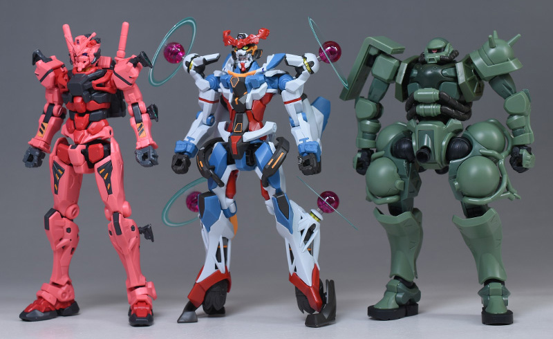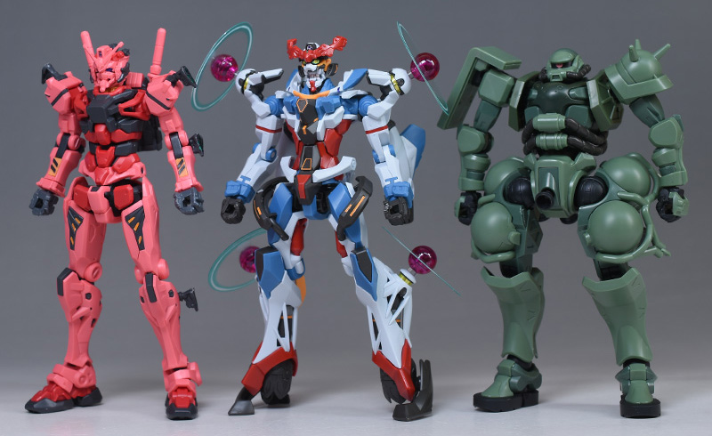 同シリーズのHG赤いガンダムHGザク(GQ)とも並べて。これまでのどのHGよりも造形が緻密。これだけクォリティが高いと落ち度を探すのが難しいですが、それでも今後のガンプラがどのような進化を見せるのか楽しみです。