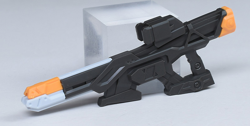 ビーム・ライフル。対MS戦用の射撃兵装です。通常版に付属しているものと同じ。どことなく近未来的な雰囲気もあり、表面にはメカニカルなモールドが造形されていて緻密。一部モールドはグレーに塗分が必要です。