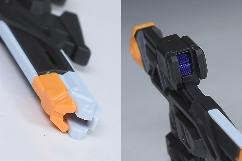 銃口はきっちりと開口されています。上部センサーはパープルのシールでの色分け。