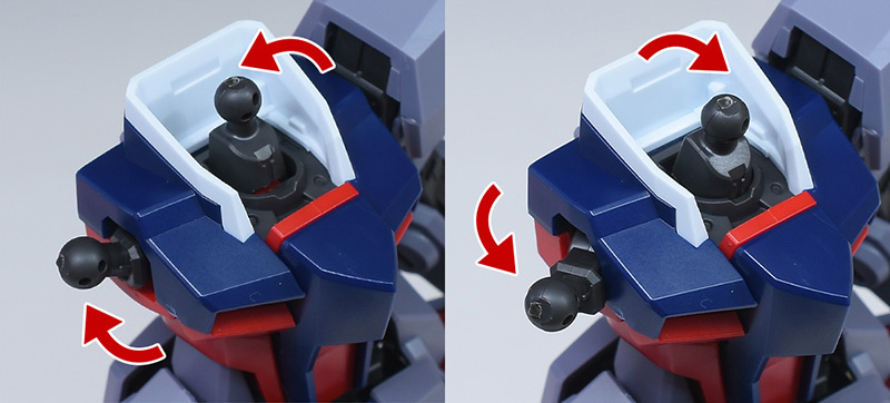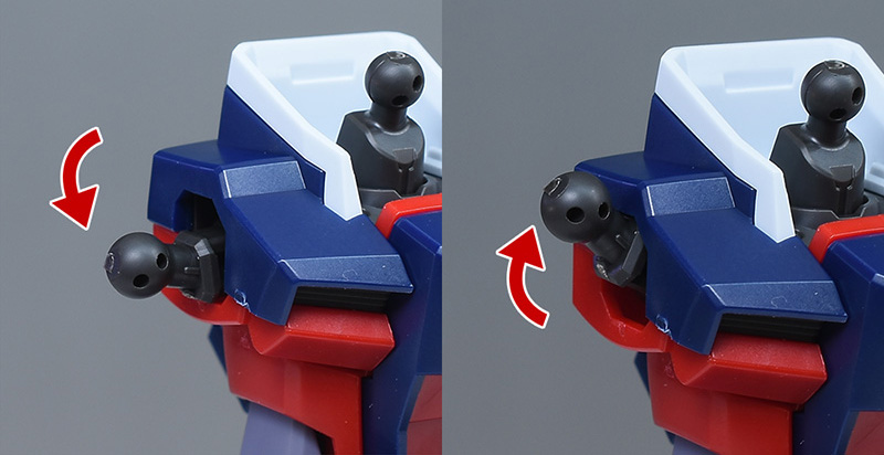 首は前後にスイングが可能。肩部には2個パーツ構成の可動ギミックがあり、ボールジョイントパーツを前方に広く展開させることができます。