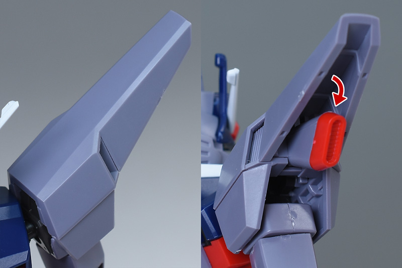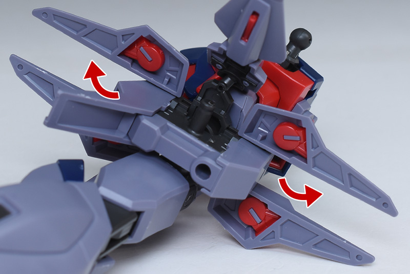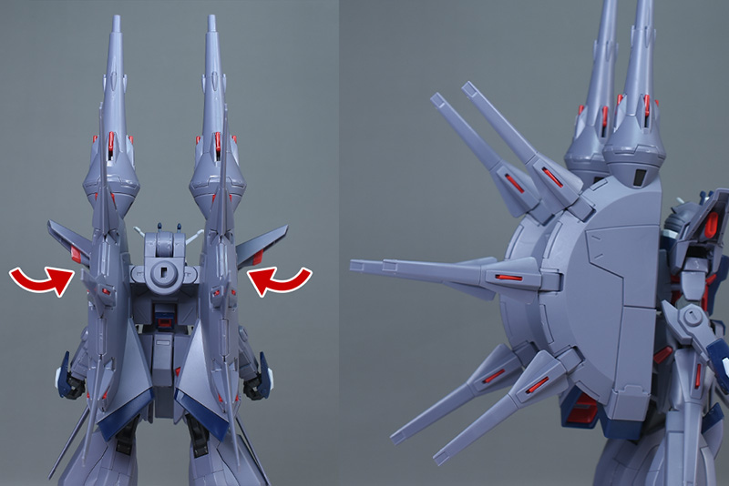 バックパック基部には太めのアームによる可動ギミックがあり、バックパック本体を上方に展開させることができます。