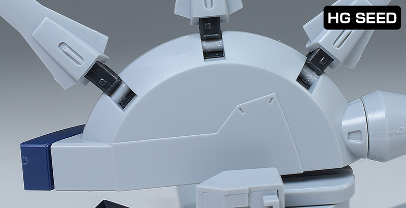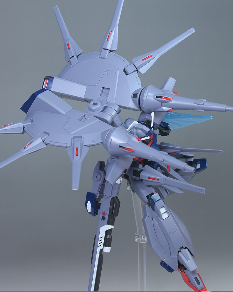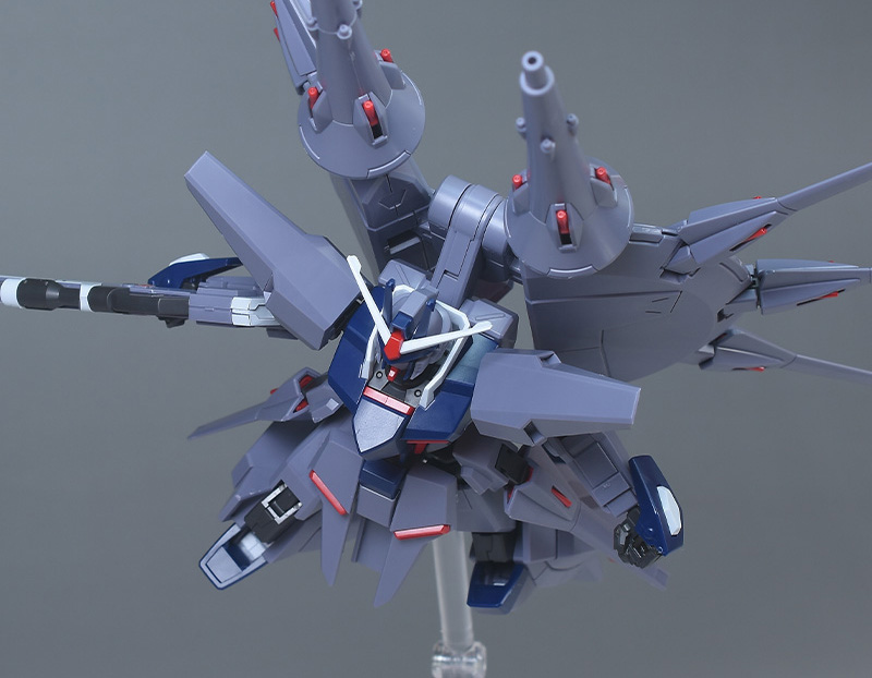 特に他キットからの流用パーツはなく、背部に分離式統合制御高速機動兵器群ネットワークシステムドラグーンを持つプロヴィデンス系譜の機体形状が新規造形で再現されています。