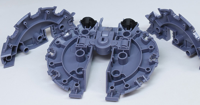 パープルグレーの外装、ダークグレーの内部や関節にはKPSが使用されています。ABSは不使用。大部分がKPSなので、キットは見た目によらず軽量です。