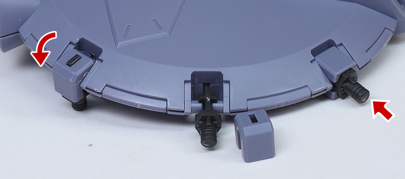プラットフォームは前後の組み合わせですが、側面の合わせ目はモールド化。突撃ビーム機動砲のジョイントはヒンジパーツにカバーを被せる仕様で前後にスイングします。押し込むことでロックされます。このあたりの構造も秀逸。ドラグーンは大小ともに取り外しが可能です。