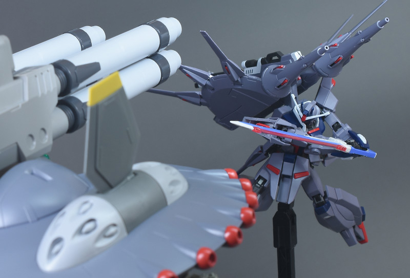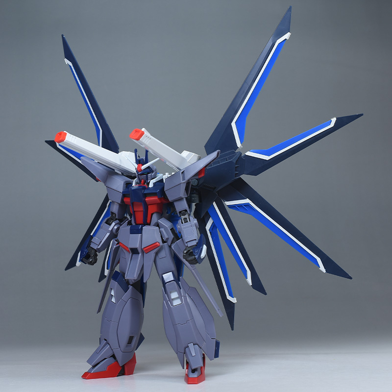 本体の組立時にはそのパーツ構成、構造の秀逸さに驚かされますし、武装類やエフェクトも多く充実した内容でギミックも豊富。SEED ACTION SYSTEMの恩恵で関節強度が高く、それでいて圧倒的な可動域を持つキット。SEEDファンはもちろん、とにかく遊び倒したい、クォリティの高いガンプラを思う存分楽しみたいという方にもオススメの一体ですね。