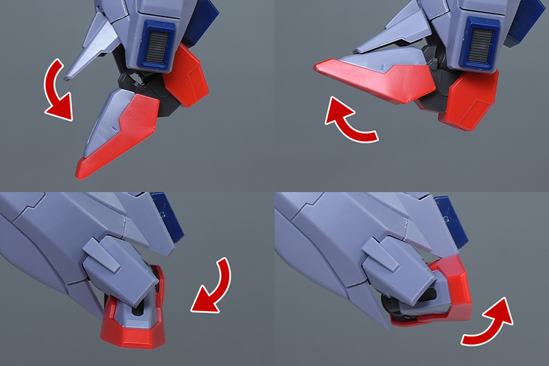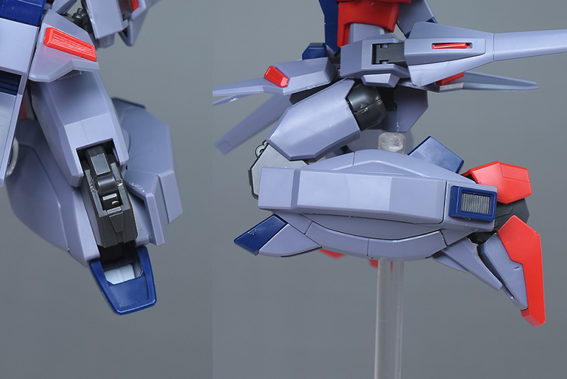 脚部側面の装甲を展開することで、内部にビームジャベリン柄を収納することができます。(奥までしっかりと差し込めます。)HG SEEDではオミットされていたギミック。
