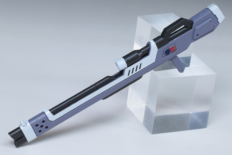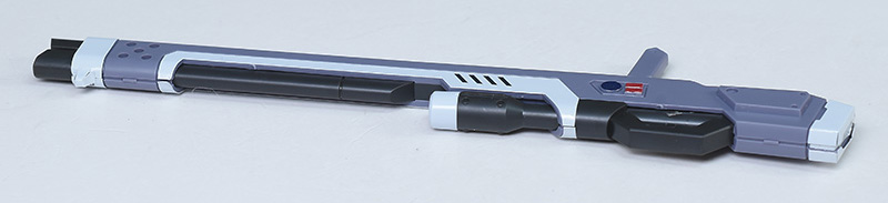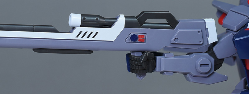 高エネルギービームライフル。先行したセカンドステージシリーズMS(カオス、アビス、ガイア、インパルスなど)が装備するビームライフルの改良型になります。ハイパーデュートリオンの搭載によって出力及び連射性が大幅にアップしたとのこと。ロングバレルタイプで、ホワイト(センサーのみ)、グレー、ダークグレーのパーツで適度に色分けされています。