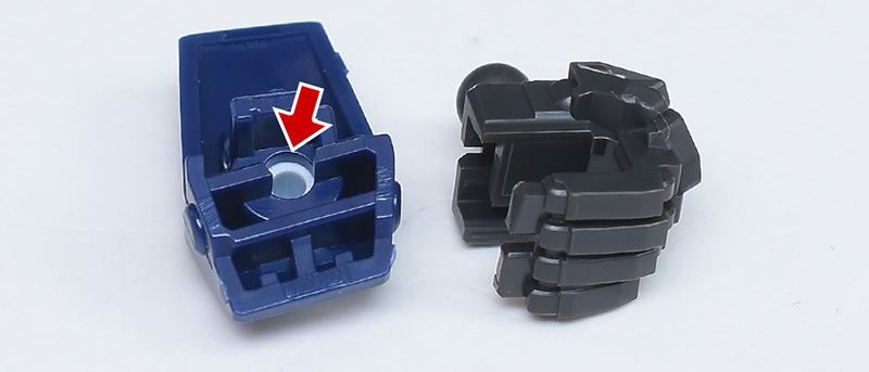 白いパーツは手甲にしっかりとハマっていますが、裏面からパーツを押し出せるので組み換えはラクです。