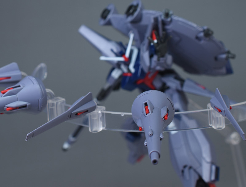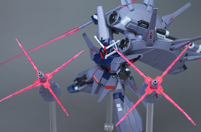 小型ドラグーン(GDU-X5突撃ビーム機動砲)も合わせ目が出来ないパーツ構成。どちらもビーム口が赤いパーツで色分けされていて良いアクセントになっています。