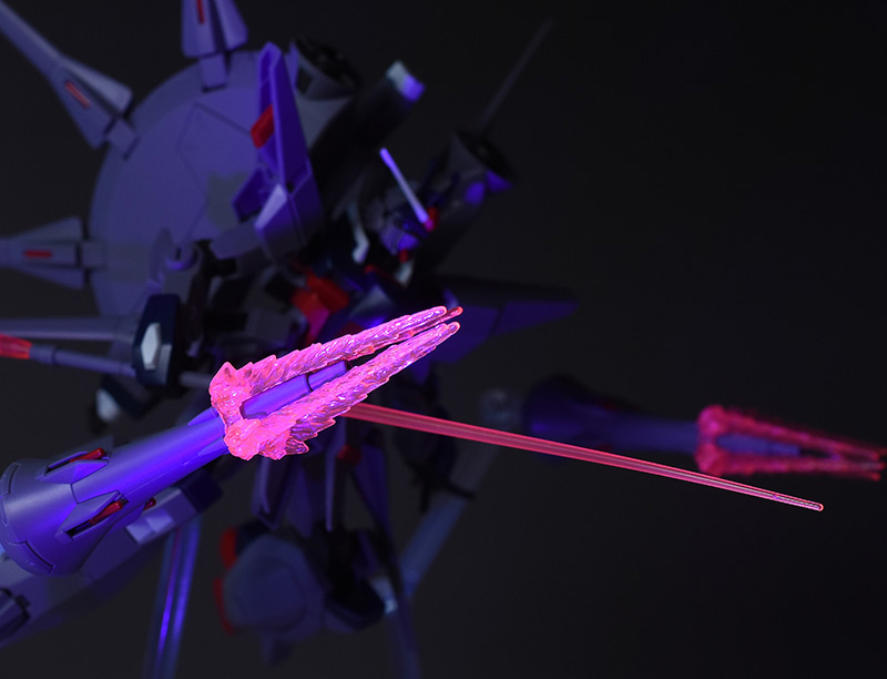 クリアピンクのビームジャベリン、ビームスパイクのエフェクトパーツはブラックライトに反応して適度に発光します。