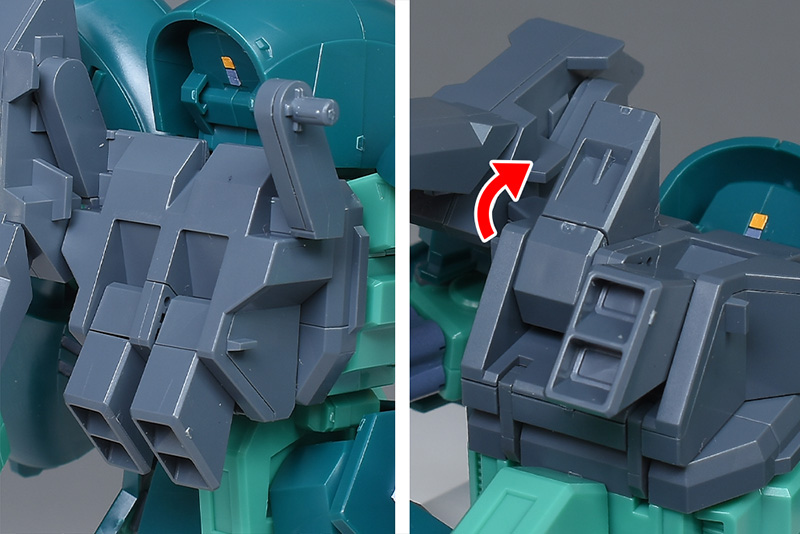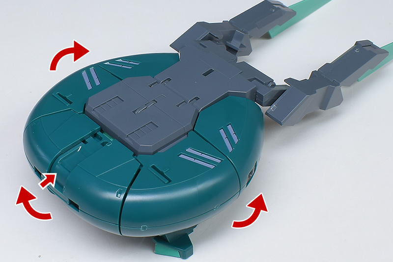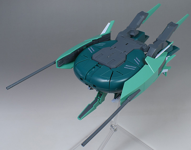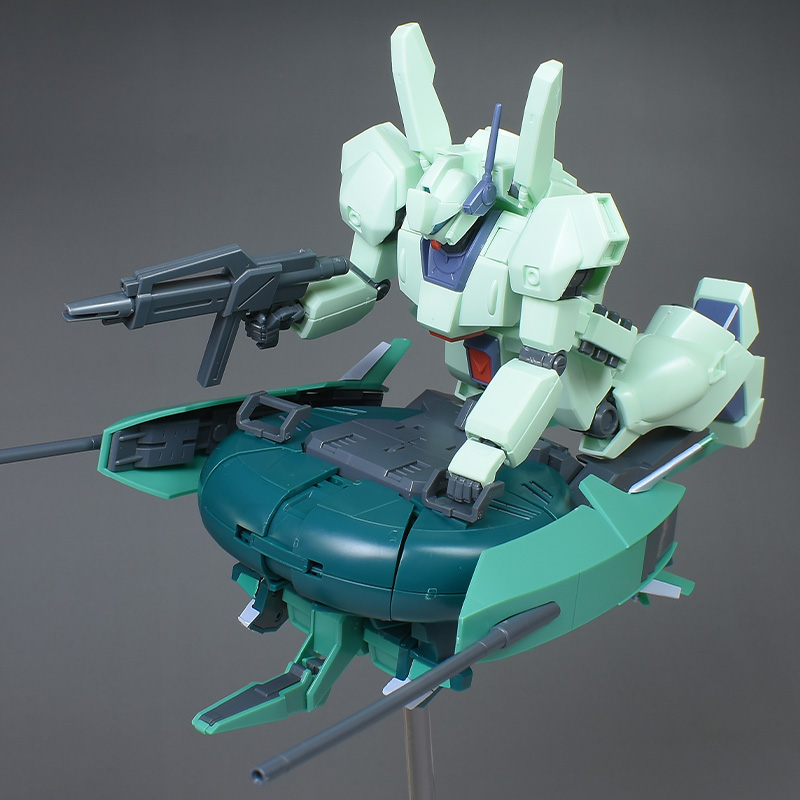 上部に積載用のジョイントパーツとグリップパーツを組み付けることで、サブ・フライト・システムとしてHGUCジェガンなどのMSを搭乗させることができます。