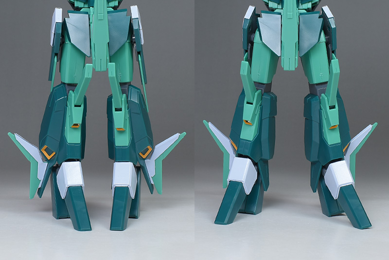 足部はハイヒール状でかなりの高さがあります。足甲はライトブルーのシールでの色分け。踵は左右の組み合わせですが、中央の合わせ目は段落ちモールド化されています。